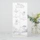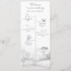 This winter mountain forest timeline wedding program is perfect for a destination wedding. The design features a hand-painted forest on hills and mountains in an idyllic winter scene.