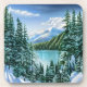 A beautiful winter Christmas trees with blue sky and snow mountain, lake landscape design.