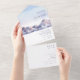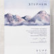 This Winter Mountain Sunset Photo seal and send all in one invitation is just what you've been looking for to complete your simple rustic moody wedding. Designed with pink and blue pastel watercolor that blends beautifully into navy and blush highlights all of which perfectly capture an evening sunset in nature. It is sure to bring your minimalist colorado adventure vibe together in a beautiful way! Keep it as is, or choose to personalise it with your photos! You can also look to other items in this collection to truly bring your whole wedding together!