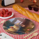A cute little female mouse drinking tea near a Christmas tree. A lovely plate for your Christmas parties! Look for the matching items in my store.