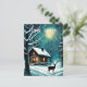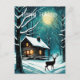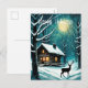 Winter Night Forest Log Cabin Deer Christmas Holiday Postcard