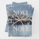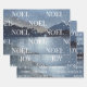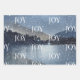 Serene and beautiful winter night scene with mountains ans snow. Each piece of wrapping paper has a word or phrase. One Merry Christmas, one joy, one noel.