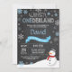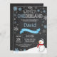 Winter Onederland 1st Birthday Invitation. Snowman. Blue and White Snowflake. First Birthday. Boy 1st Bday Invite. Chalkboard Background. Black and White. For further customisation, please click the "Customise it" button and use our design tool to modify this template.