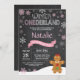Winter Onederland Snowman 1st Birthday Invitation. Gingerbread man. Pink and White Snowflake. First Birthday. Girl 1st Bday Invite. Chalkboard Background. Black and White. For further customisation, please click the "Customise it" button and use our design tool to modify this template.