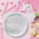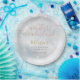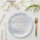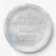 Cute 1st birthday winter ONEderland paper plates featuring elegant typography and delicate snowflakes on a winter frost background. Designed by Thisisnotme©