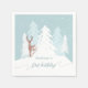 First Birthday Winter Wonderland, Onederland Napkin. With little snowflakes, a cute deer and pine trees. Set a sweet and magical tone for the party with this coordinating customisable napkin design. Perfect for your little snowman's first Birthday.