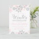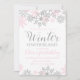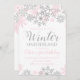 Winter Onederland first birthday party invitation with baby pink and silver glitter snowflakes