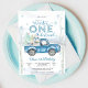 Celebrate your little ones first birthday in style with this charming Winter ONEderland invitation. Featuring snowy birch trees, delicate snowflakes, and a vintage blue truck carrying gifts and a snowman, this design perfectly blends whimsical winter magic with milestone celebration. Personalize with your childs name, party details, and RSVP information to create a keepsake guests will adore. Ideal for winter-themed birthdays, baby showers, or seasonal parties, this invitation adds a festive touch to your special day.