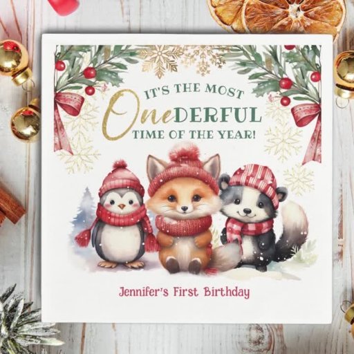 Winter Onederland Cute Snow Animals 1st BirthdayDesigned by H-Art Studio Design