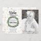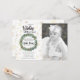 Winter ONEderland first birthday invitation with gold snowflakes and Christmas elements for Christmas babies! This version is split with an image of the birthday girl.