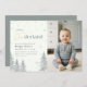 This winter onederland first birthday invite pairs silver blue snow snowflake accents with soft watercolor pine tree art to frame your onederful baby kid toddler photo. Ideal for a boy girl winter wonderland birthday, it brings a modern minimal rustic feel to a snowy forest boy photo picture celebration. Personalize the custom editable personized photo rsvp and event details for a charming first year milestone announcement. Personalize yours today.