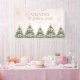 Winter Onederland Pink Bow Pine Trees 1st Birthday Banner