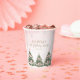 Celebrate your little one’s milestone with these Winter Onederland Pink Bow Pine Trees 1st Birthday Paper Cups featuring snowflakes and festive Christmas trees with pink bows. Easily personalize all text and photos for a magical winter birthday celebration.
