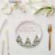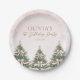 Winter Onederland Pink Bow Pine Trees 1st Birthday Paper Plate