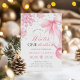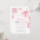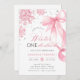 Winter Onederland Pink Bow Snowflake Birthday Invitation