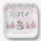 Winter Onederland Pink Silver Glitter 1st Birthday Paper Plate