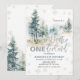 Rustic Forest Pine Trees Winter Onederland Snowflake 1st Birthday Invitation