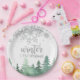 Winter Onederland Silver snowflakes and trees Paper Plate