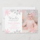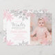 Winter ONEderland first birthday with pink and silver glitter snowflakes photo birthday invitation.