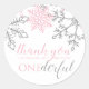 Winter Onederland snowflake thank you favour stickers pink and silver.