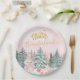 Winter ONEderland Snowman Girl 1st Birthday Pink Paper Plate
