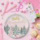 Make your baby girl's first birthday truly magical with these whimsical Winter ONEderland paper plates! Designed in soft pastel pink tones, with adorable snowflakes, a cheerful snowman, festive holiday gift boxes, and a sparkling Christmas tree, these plates are the perfect addition to your winter birthday party theme.