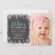 Cute winter ONEderland girl 1st photo birthday invitations. Design features a chalkboard background, white snowflake border and accents of soft pink and teal blue. Girly and cute!