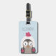 This adorable personalised luggage tag makes a great kids stocking stuffer or gift for grandchildren. Cute wintry design features a snowy sky blue background with a cute baby owl decked out in a pink winter hat and scarf. Personalise with a name or monogram on the front, and add your contact information to the reverse side.