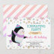 Winter penguin ice skating party invitation