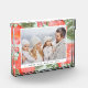 Display a treasured holiday memory with our chic and elegant photo block. Your horizontal or landscape orientated photo is framed in white and surrounded by handpainted watercolor red peony flowers and green foliage. Personalise with your custom caption and/or names.