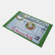 Welcome friends and family into your home with this beautiful welcome mat that depicts a wintery snow scene with a white picket fence and a beautiful Christmas wreath hanging on it. It's bordered in Christmas green and you personalise with your name or you can change it to "Welcome To Our Home".