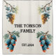 Elegant watercolor pine cones with frosted greenery frame the centre space for a personalised family name and established year. This cosy winter design adds a rustic yet refined touch to home and living products such as blankets, mugs, pillows, and wall art. Perfect for creating a warm seasonal atmosphere and celebrating family traditions during the winter months.