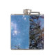 An ethereal magical image with an up close view of a pine tree and its branches with many pine cones grouped together. The night sky is a combination of enchanting blues and purples swirling together with ethereal luminous formations and bright twinkling stars shining up above.