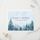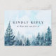 An elegant winter watercolor pine tree forest RSVP card with chic typography. The reverse features your details and a fun guest song request. Designed by Thisisnotme©