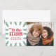 Celebrate the holiday season in style with a rustic winter pine holiday photo card. The trendy Christmas photo card features a green pine border, the words "tis the season" in red stylish typography, and placeholders for custom text and a photo.