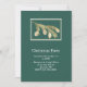 Christmas party invitation done in a Kelly green, with graphics of a gold tone pine branch with pine cones. Personalise the white coloured text fields to suit your holiday needs.
