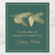 Festive emerald green and gold tone holiday wine label featuring a golden pine branch with a pine cone. Personalise the text fields for your holiday party. Matching products are available.