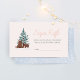 This cute and modern girls baby shower ‘diaper raffle’ enclosure card design features a whimsical baby bear forest design, with a matching blue snowy pattern on the back. There is space for you to ask guests to bring diapers along for a raffle, use the message provided or create your own! Find the matching winter pine tree invitation in our collection.