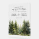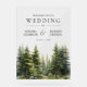 Elegant forest theme wedding welcome sign featuring beautiful pine trees and modern typography.