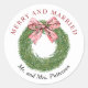 Winter Pine Wreath Bow Merry & Married Christmas Classic Round Sticker
