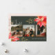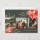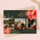 This winter floral joyful three photo christmas holiday card has a whimsical and elegant design featuring vibrant watercolor illustrations of red and pink poinsettias and delicate winter greenery. With chic botanical elements like pine, holly, and winter berries, the card’s colourful palette, including dusty rose and gold accents, adds a boho touch to a modern holiday aesthetic. This festive December design blends a light, whimsical vibe with a floral theme perfect for the Christmas season.