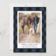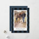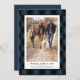 Send holiday greetings to friends and family with our rustic elegant photo cards featuring a wintry navy blue and black buffalo plaid pattern framing your favorite vertical photo. Personalize with two lines of custom text; shown with "Merriest Christmas," your name(s) and the year.