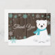 Rustic Winter Polar Bear Snowflake Aqua Thank You Card. Aqua Polar Bear. Rustic Wood Background. Country Vintage Retro Barn. Auqa Snowflake. Love and Thanks, beautiful script font. Add your message on back or leave blank and hand write. For further customisation, please click the "Customise it" button and use our design tool to modify this template.
