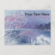 A watercolor landscape of a winter pond with surrounding foliage frosted with ice adorns this customisable postcard!