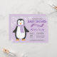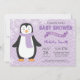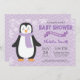 Winter Purple Penguin Girl Baby Shower Invitationn. Girl Baby Shower Invitation. Winter Holiday Baby Shower Invite. Purple and White Snowflakes. Purple Chevron Background. For further customisation, please click the "Customise it" button and use our design tool to modify this template.