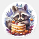 Winter Racoon with a 1th Birthday cake Classic Round Sticker