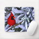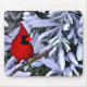 A beautiful Red Cardinal resting among snowy winter evergreens.
