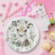 Winter themed paper plate featuring an adorable reindeer and soft greenery leaves. Matching items available in our store!