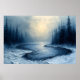 Winter River Bend – Abstract Foggy Forest Scene Poster