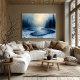 This stunning abstract painting captures the tranquillity of a foggy winter forest, with a gentle river winding through the snow-covered landscape. The scene is imitating the use of bold palette knife strokes, which add texture and depth to the icy water and surrounding trees. The combination of misty blues and soft greys brings a calming, ethereal atmosphere to life, making this piece a perfect addition for anyone seeking peaceful, nature-inspired wall art. The abstract expressionism technique creates a unique and visually striking interpretation of a serene winter landscape.